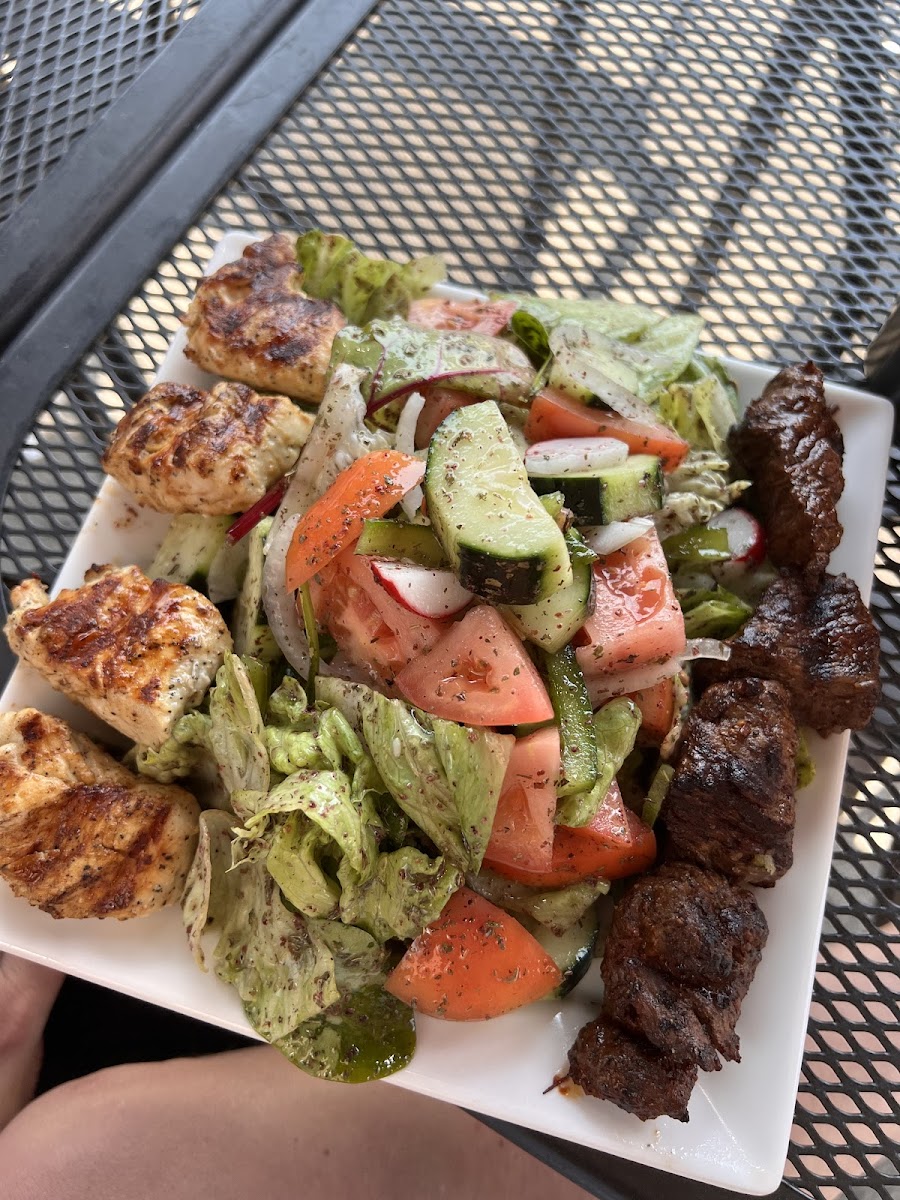 The stars have aligned. Schnitzel Express may be my favorite restaurant of 2025! Amazing, and I still smell like bbq. Choosing to dine in, I was enthralled by their display of veggies. You get 4x selection of veggies with their Wally Mix Grill. Meat flame grilled to a perfection. Chicken shish, beef shish, chicken shawarma, and kofta. The smokiness of their flavored meat is a big win. Falafel as a side was scrumptious and not too salty. Chicken shawarma on top of hummus was my personal favorite. Flavorful, a great texture combination with juicy shawarma and smooth yet dense hummus. Did I mention portion sizes were humongous? I have a meal for the next day or two that I'll gladly consume. I have to add that they get a lot of foot traffic. Good sign. Ingredient turnover must be frequent. Made me rest assured they are frequently cooking up fresh items. Their pricing is not bad. A lot of places that prepare similar cuisine are charging an arm and a leg for bbq now. You get to see them cook the meat in front of you too. Nothing is reheated.