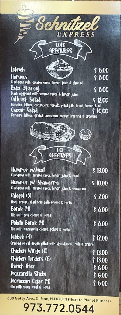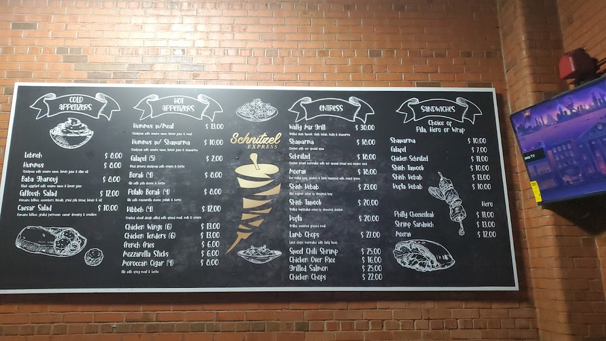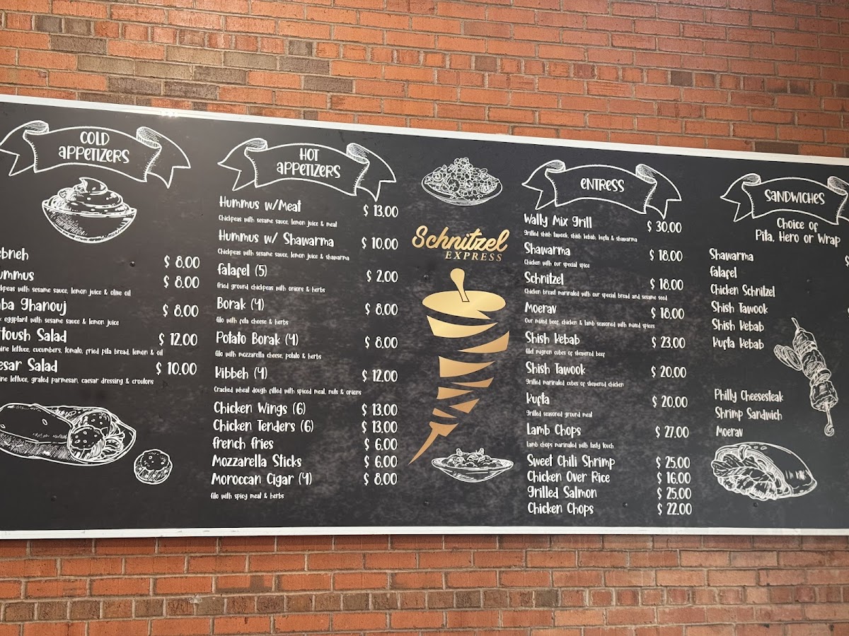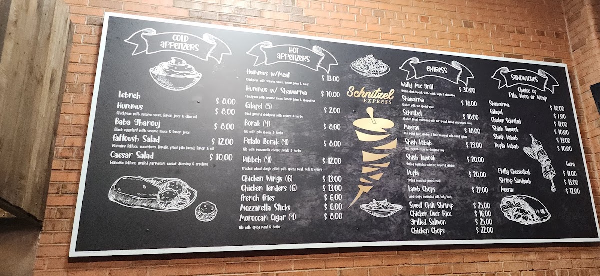 The menu at Schnitzel Express offers a straightforward, welcoming selection grounded in Mediterranean and Middle Eastern flavors. You’ll find a balanced mix of comforting platters and casual bites, making it easy to enjoy a relaxed lunch or a satisfying dinner in a friendly atmosphere.